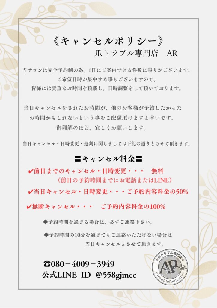 ※肥厚爪フットケアコース +1,100円